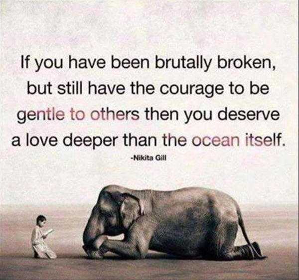 “If you have been brutally broken, but still have the courage to be gentle to others then you deserve a love deeper than the ocean itself.”